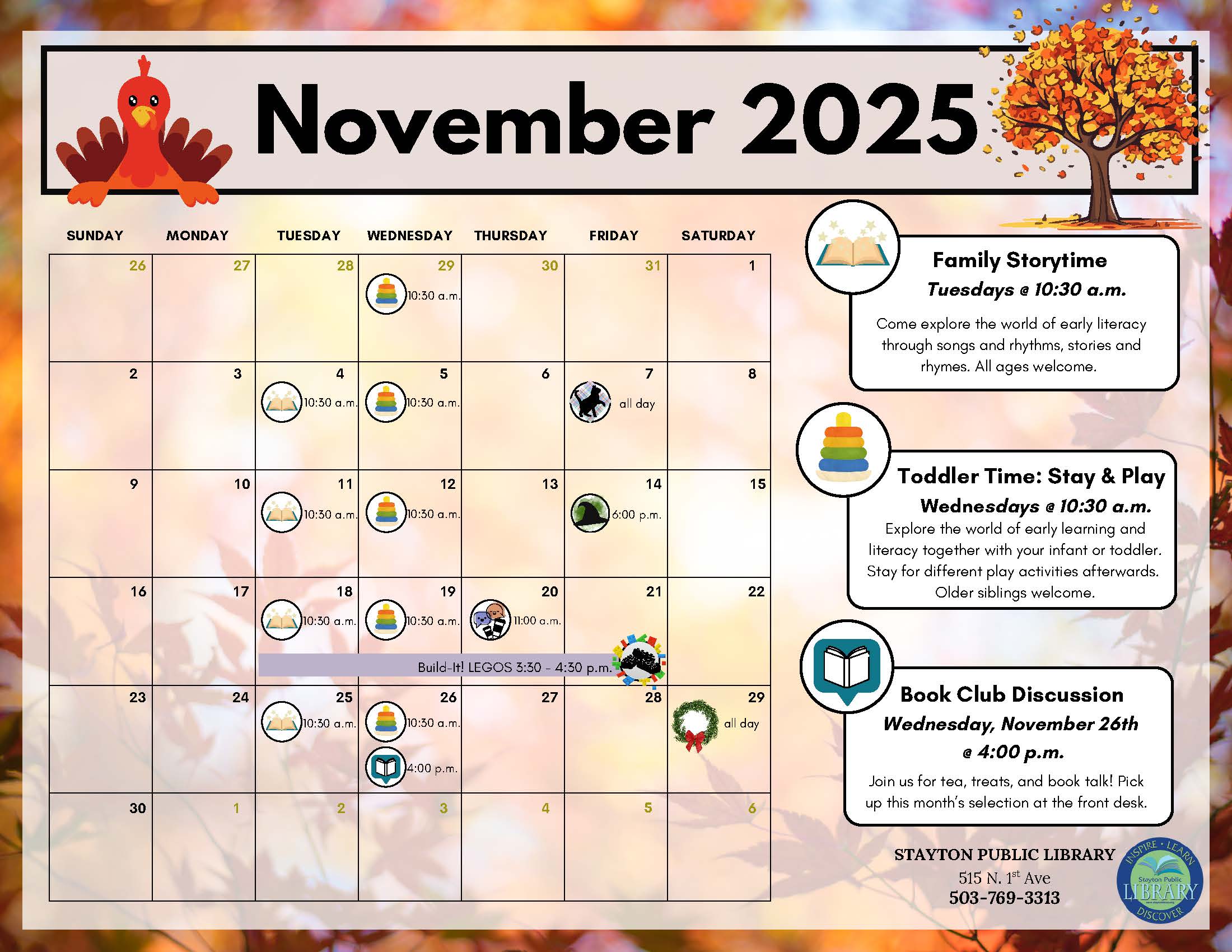Fall into a month of excitement, creativity, and community at the Stayton Public Library! Check out what’s happening this October: