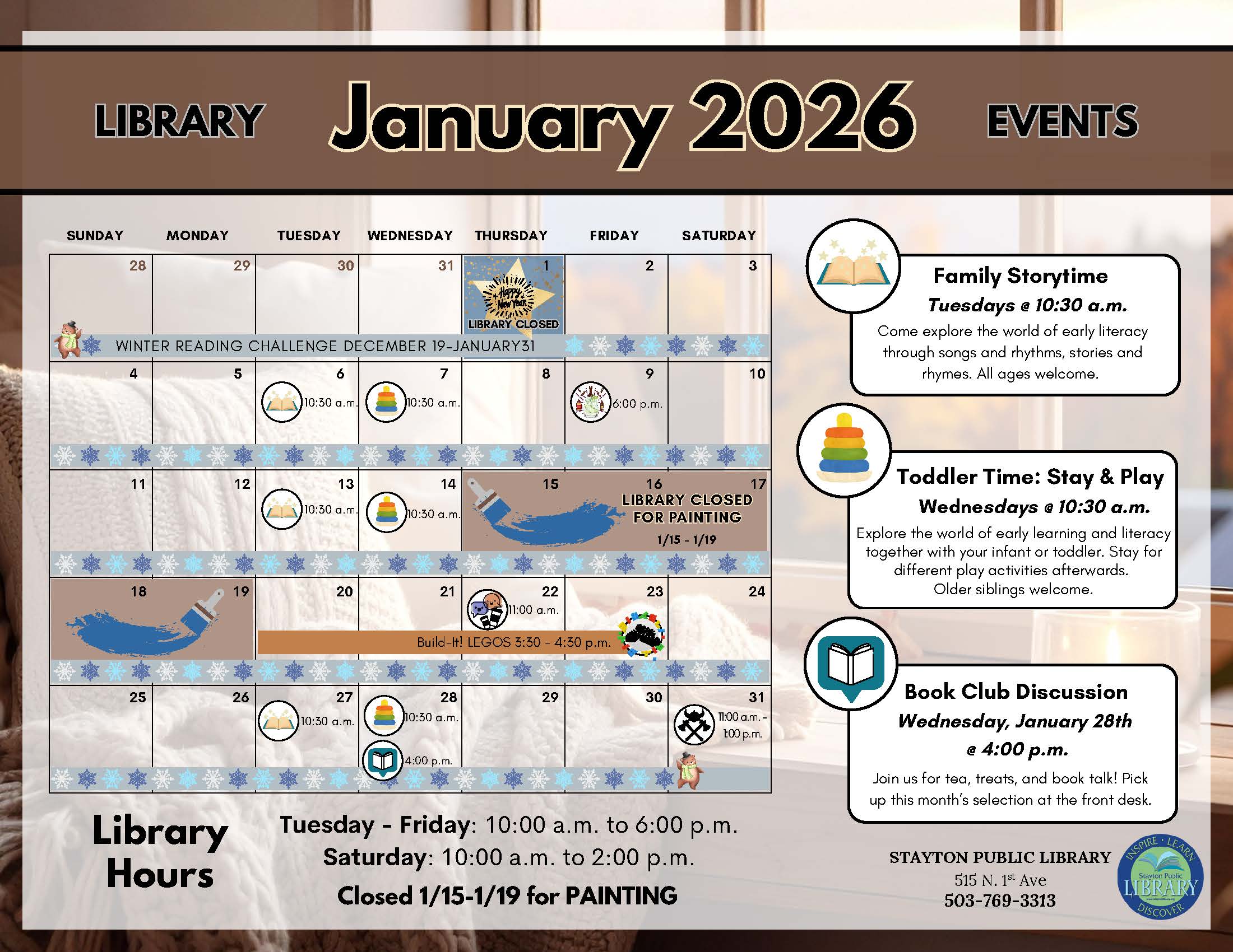 The Library will be closed January 15–19 while we get a fresh new coat of paint inside!