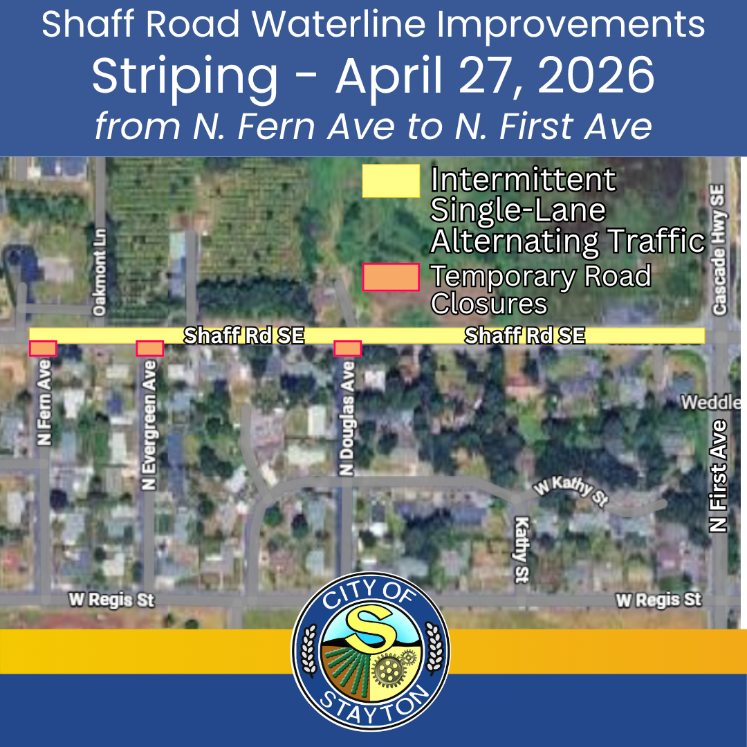 Striping will occur along Shaff Road, between N. Fern Ave and N. First Ave, on April 27, 2026.